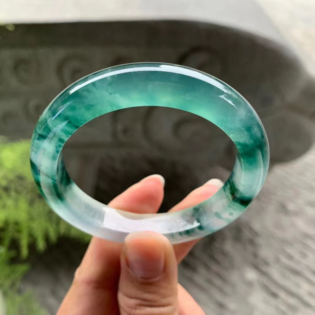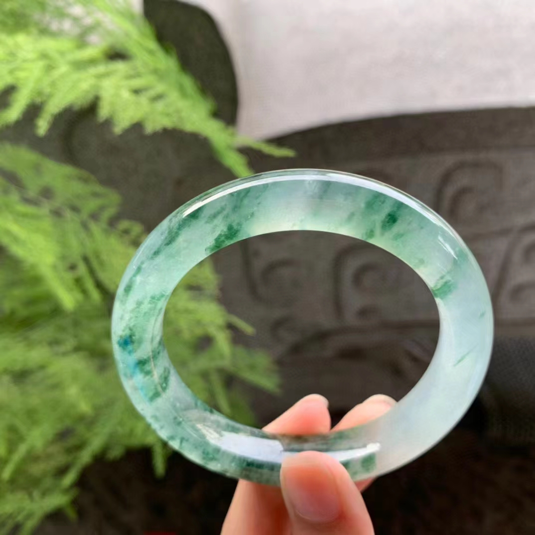 高(gāo)冰飄花(huā)圓條翡翠手镯